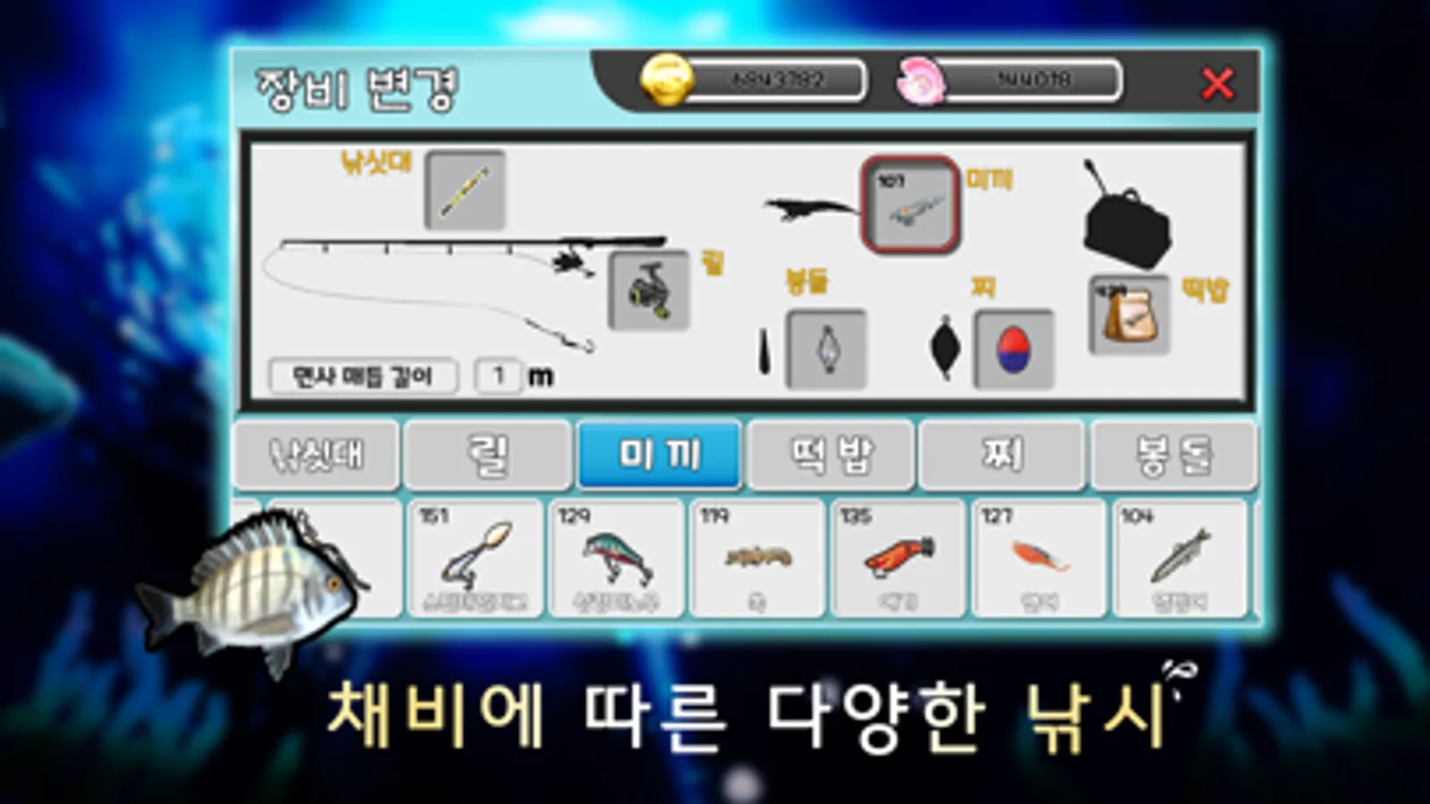 실제로 존재하는 유명 낚시 포인트와 암초 사니질 해조류 물골 급심 지대 등 해저 환경을 구현하였습니다.