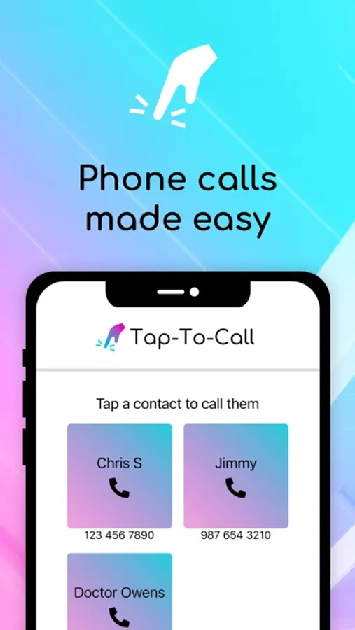 Stay connected with your loved ones with Tap-To-Call. After adding your favorite contacts’ names and phone numbers, just tap on their name to call! Tap-To-Call sorts your contacts by how often you call them, making it easier to get to your most important contacts fast.