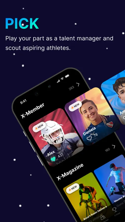 Play your part as a talent manager and scout aspiring athletes. Collect unique player cards that marks your support.