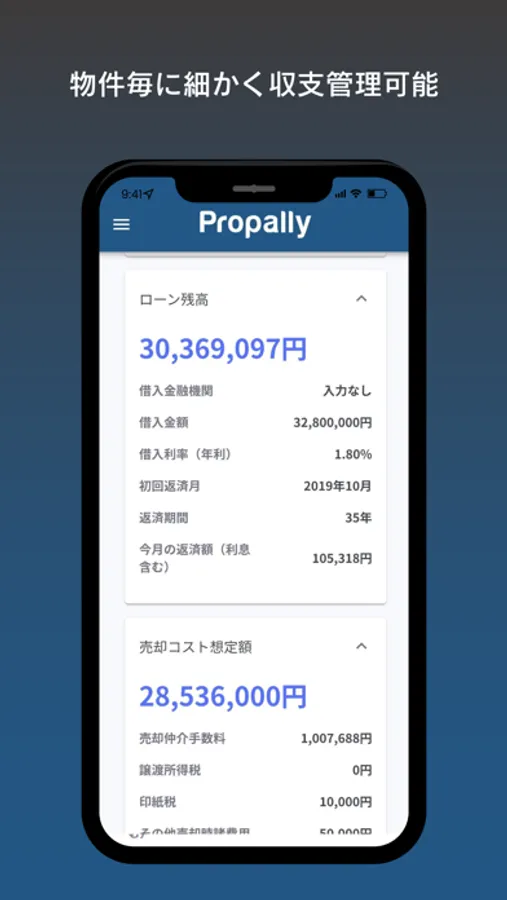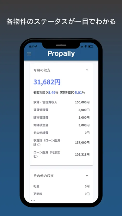 保有物件の収支実績を、物件毎にいつでもにスマホで確認できます。