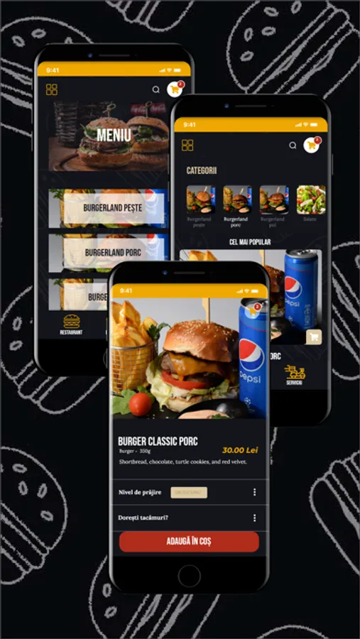 Pentru toți clienții pasionați de gustul autentic al mâncării, am creat aplicația Burger Land. Acum te poți bucura de cei mai buni burgeri prin intermediul aplicației mobile. Comandă și plătește prin intermediul aplicației. Poți selecta metoda de livrare preferată, îți livrăm comanda aleasă, poți ridica comanda sau ne întâlnim chiar la jumătatea drumului. De asemenea, te vom recompensa pentru fiecare comandă efectuată prin aplicația noastră. Nu rata această ocazie, downloadează aplicația!