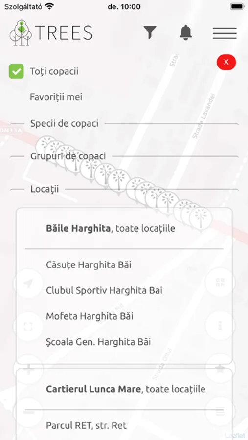 TREES is an online platform in the form of an interactive application. It is based on the map of Miercurea-Ciuc Municipality, where you can identify trees in public green spaces and access information about these trees. The application has a messaging function, through which users can send messages, requests for information related to a particular tree to the local municipality, which responds to these messages publicly and in turn sends messages to interested locals about planned interventions in green spaces, involving society and taking into account their observations. Thus, this platform becomes a simple and effective WatchDog tool, the reported problems and their resolution being public, anyone can check how and how quickly a problem was resolved.