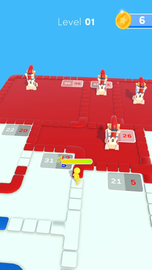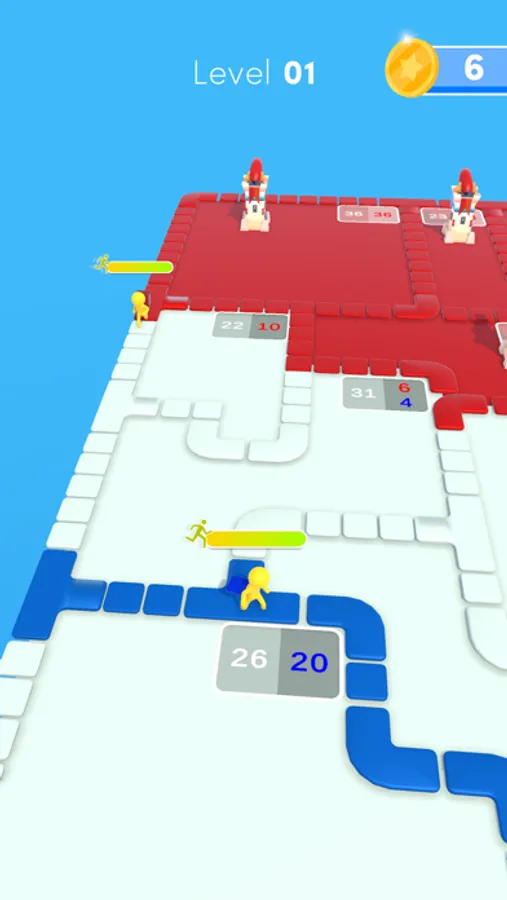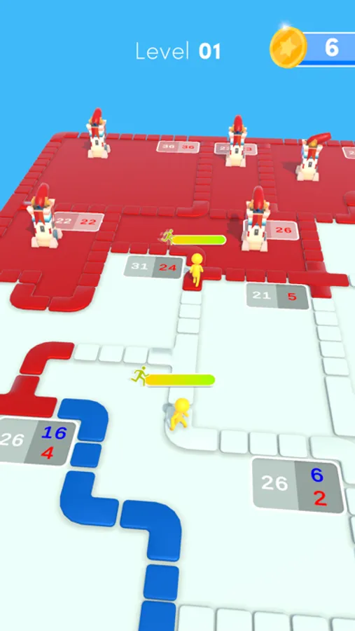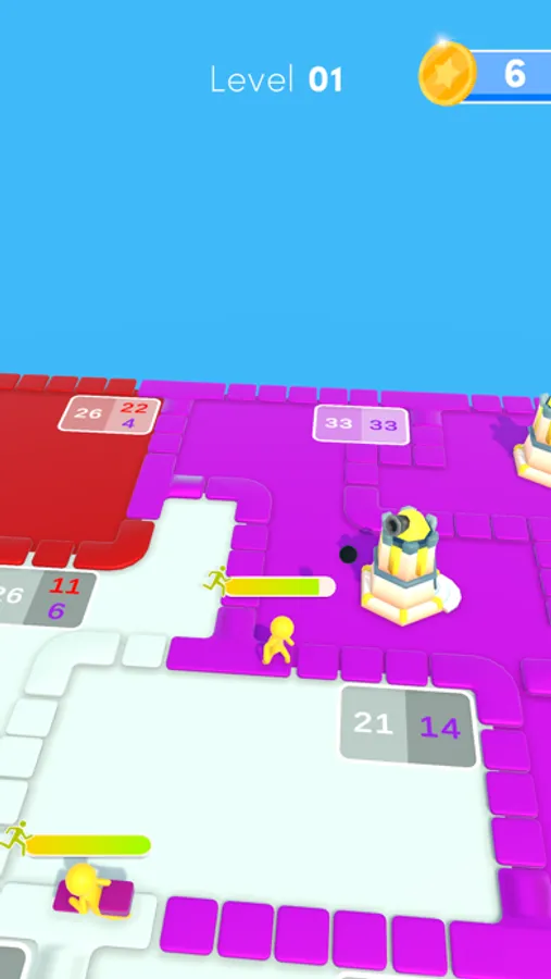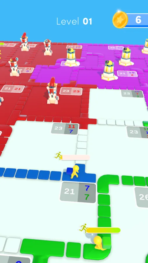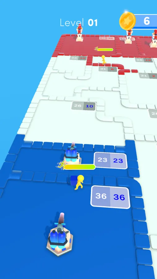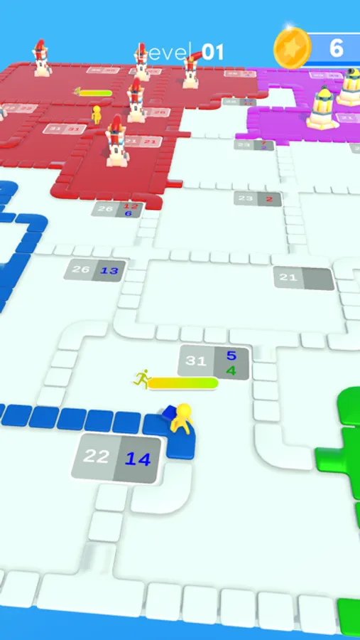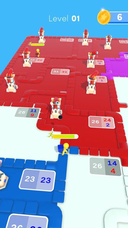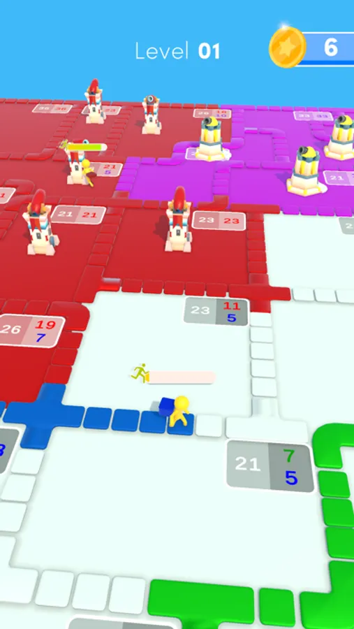 Collect the bricks and do the upgrades. The more upgrades you do, the more bricks you can collect. Conquer the borders using the bricks to defeat your enemy.