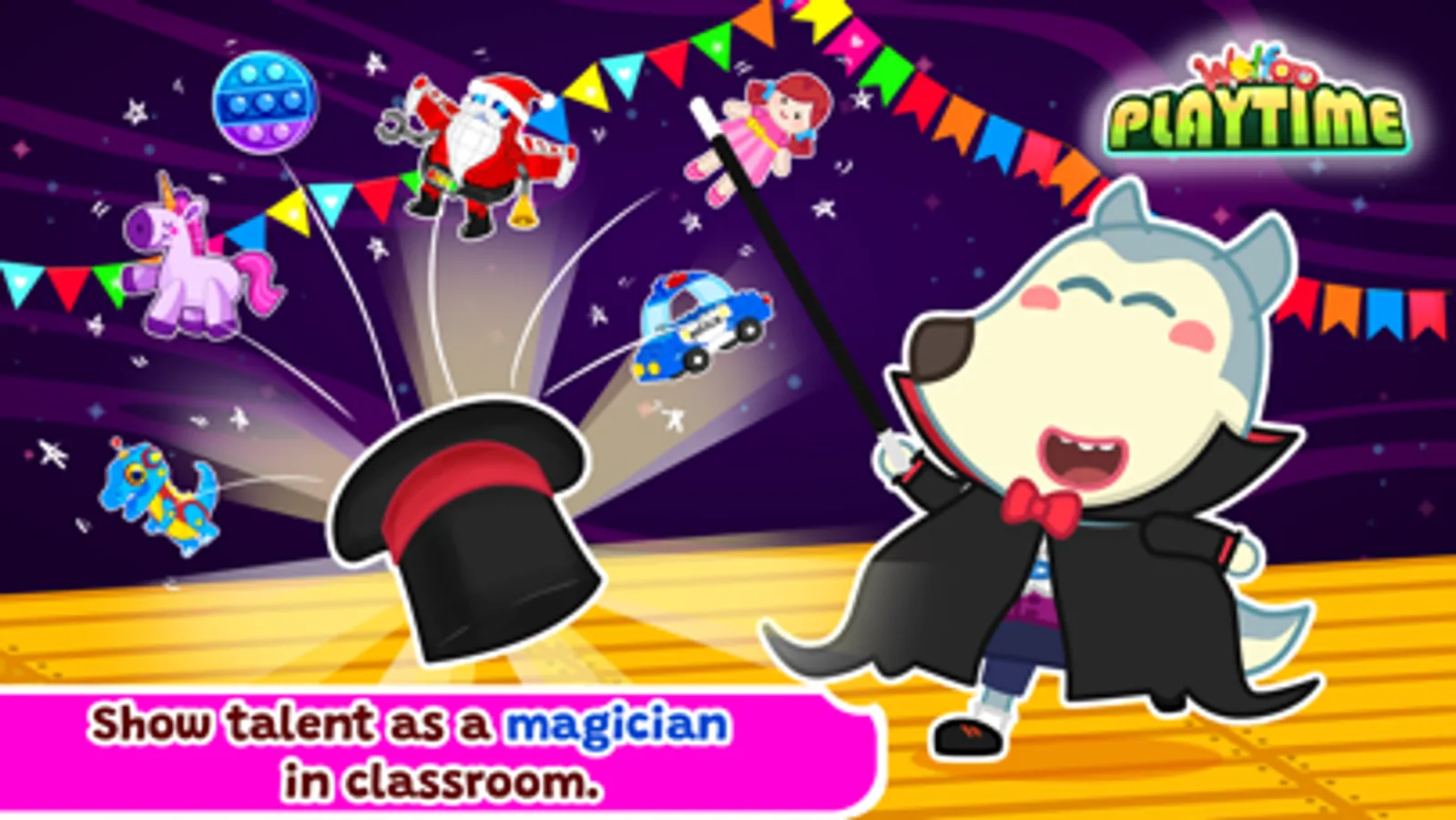 Let's have a break after many lessons in elementary school, preschool, or kindergarten. Playtime with classmates in this schooling game is so fun and cool. You will enjoy variety of interesting games and educational activities with Wolfoo.