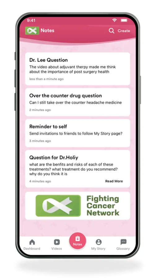 This version of the Fighting Cancer Network App is limited to Breast Cancer and Prostate Cancer. Other cancers will be added over time. Fighting Cancer Network app is designed to provide actionable knowledge to cancer patients, caregivers, and others who desire to understand a diagnosis and treatment options using highly produced, short videos. The videos are curated to your cancer based on answers to a simple set of questions. The app also includes helpful features such as NOTES for your physicians, Journal called “My Story” which allows you to share and communicate with your friends and family, a Glossary of terms, and medication reminder.