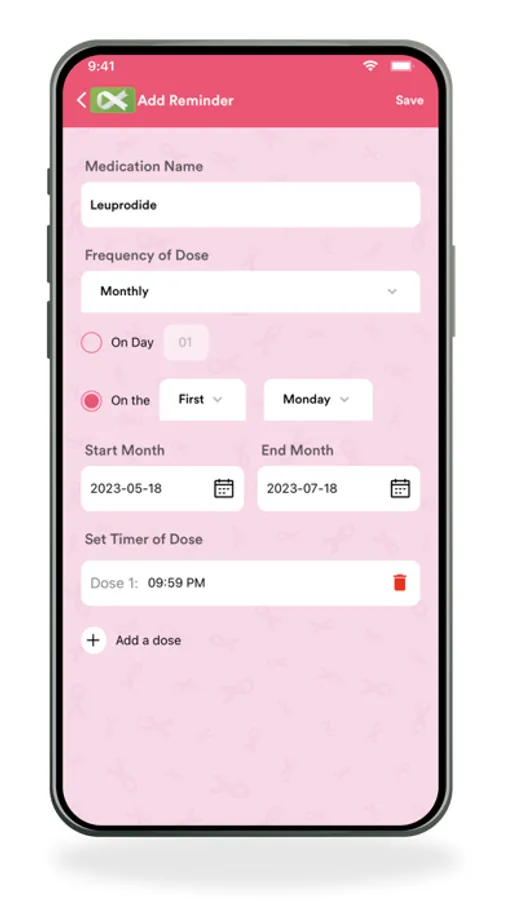 The NOTES feature allows you to keep track of questions you may have for your physician or things to share with your spouse, family or friends.