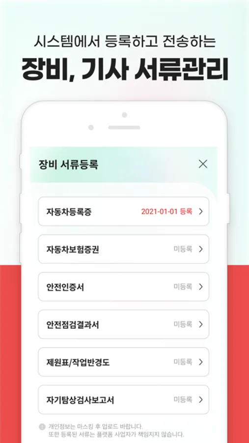 시스템에서 등록하고 전송하는 장비, 기사 서류관리