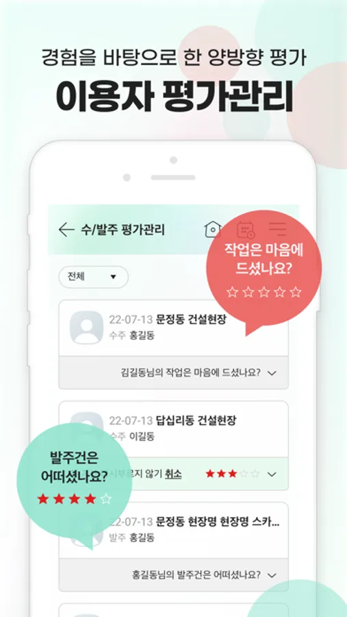 경험을 바탕으로 한 양방향 평가, 이용자 평가관리