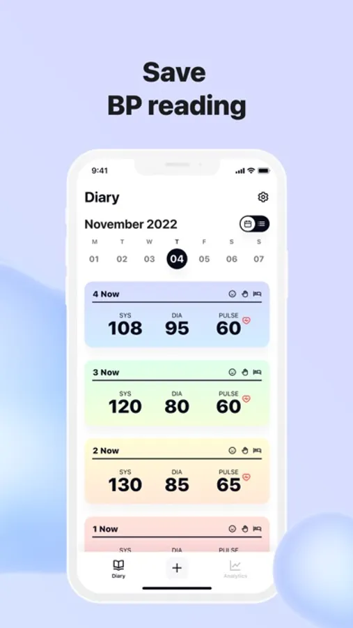 App is a blood pressure management diary that helps you to record, track, analyze and share your Blood Pressure result.
