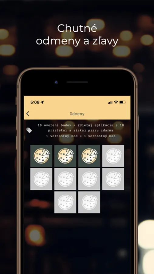 Súčasťou aplikácie je aj vernostný program, vďaka ktorému môžeš získať pizzu aj za polovičnú cenu alebo iné odmeny.