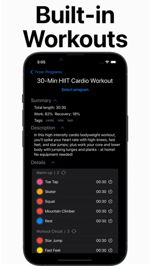 Interval Flow is a versatile app that allows you to create custom exercise programs using repeatable circuits and intervals and it guides you through your exercises hands-free. This app features a new voice assist, which announces your next move, letting you focus on your workout, not your screen. The app comes with a selection of built-in exercise programs, but you can also create your own by setting the intervals' work type, duration, and order, and choosing the colors and warning sounds for each interval. Circuit Flow automatically calculates the work/recovery ratio for your exercise program, ensuring that you get the most effective workout. With its intuitive interface and customizable features, Circuit Flow is the perfect companion for your fitness routine.