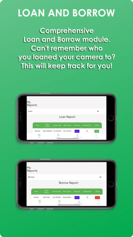 • Loan or Borrow an Item and keep track of who has your stuff! (And of things you should return…)