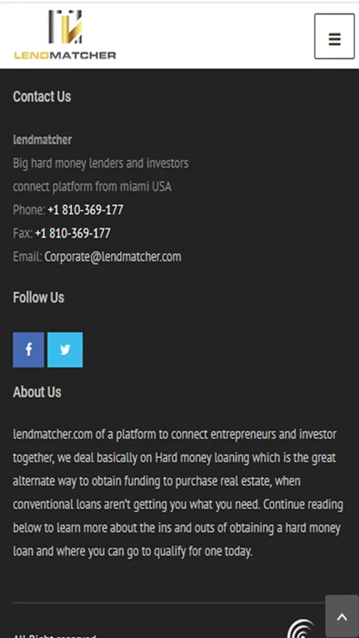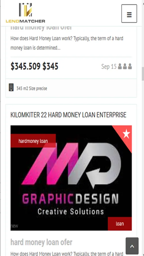 lendmatcher is a platform to connect Hard money and investor together, we deal basically on Hard money loaning which is the great alternate way to obtain funding to purchase real estate,