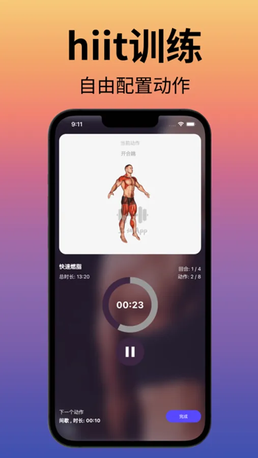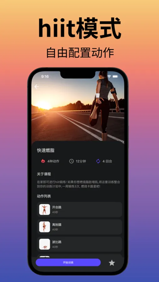 2. 2种训练模式可供你使用,常规模式(灵活配置,根据自己节奏来),hiit模式(灵活配置,根据预先设定的程序来).不同场景,动态切换