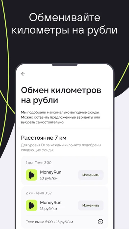 - Вступать в фонды, которые предоставляют разные курсы обмена километров в зависимости от уровня активности бегуна