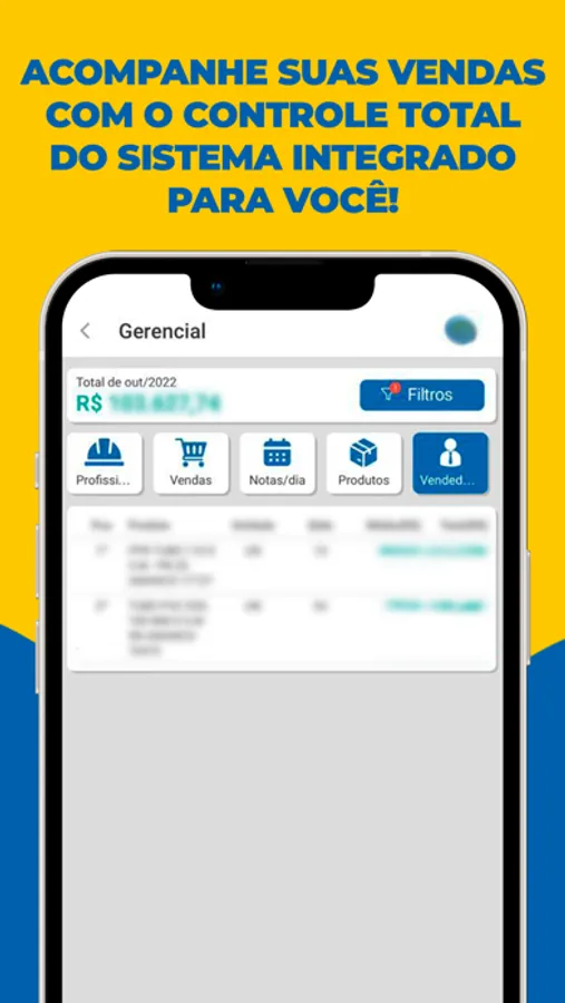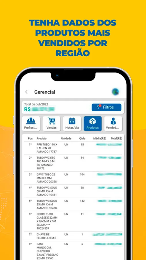 Defina metas e premiações com os dados a base de venda de seus produtos entre lojistas e profissionais da área da construção civil;