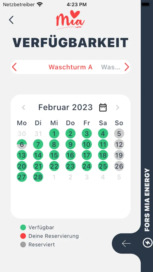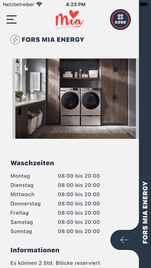 • Mia Energy ermöglicht es dir, die Nutzung von Waschmaschinen und Trocknern in deinem Gebäude zu planen und zu bezahlen.