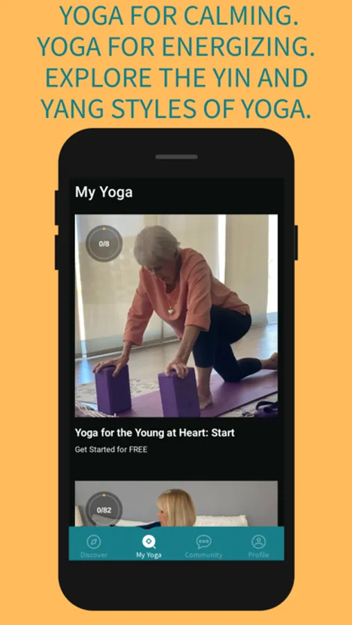 Yoga for the Young at Heart is an app offering gentle yoga designed for active and older adults.