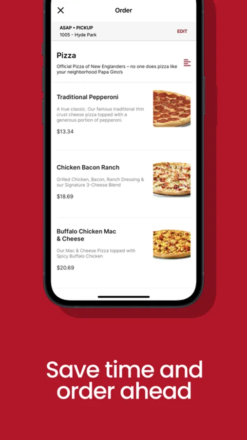 Papa Gino's is the Official Pizza of New Englanders. Thanks for downloading the app and becoming part of our crew! Not only do we have the greatest, most delicious pizzas around (seriously!), but we also offer appetizers, sandwiches, pasta, baskets, salads and desserts. Need to feed a crowd – no problem – check out our catering options too. All the same amazing food – but just more of it! Whether you want to carry out, dine-in or get delivery – we are here to serve! Let’s do this – ordering ahead has never been so easy.