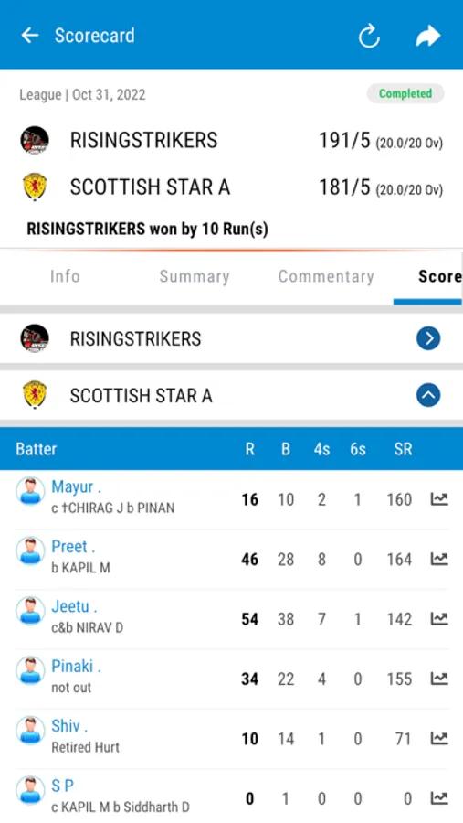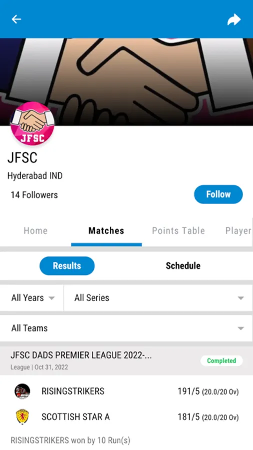 Follow along with cricket score updates of Jolly Friends Sports Club by downloading the app.