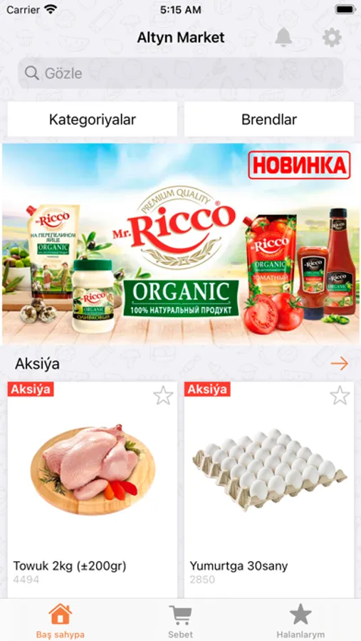 Onlaýn marketimizde yzygiderli arzanladyşlar we aksiýalar geçirilip durýar. Harytlary gözläniňizde kategoriýalary, brendler bölümini ýa-da gözleg ulgamyny ulanyp bilersiňiz. Soň aňsatlyk bilen tapmak isleýän harytlaryňyzy bolsa "Halanlarym" sanawyna goşup bilersiňiz.