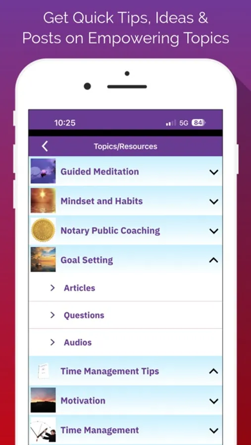 What you find inside are articles and lessons that guide you through these areas, guided meditation (for example on goal setting, motivation, reducing stress and many more) visually inspirational and motivational resources that are designed to keep you on course.