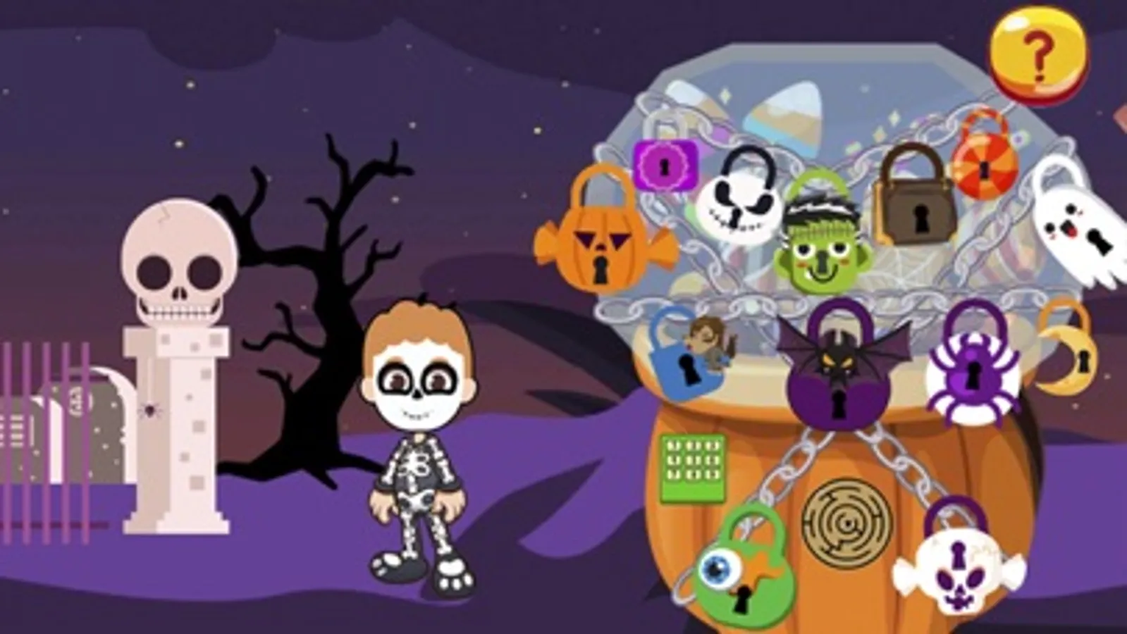 Miss Tomyris and Altair want to have candies. The pumkin bucket full of candies is locked with 15 locks. There is only one way to open it! Find 15 keys, solve puzzles along the way!