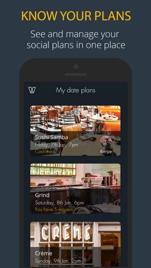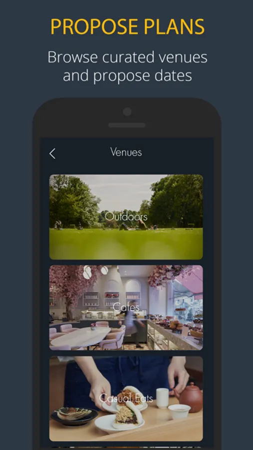 Pick and join plan invitations posted by others or browse curated venues and propose your own plans.