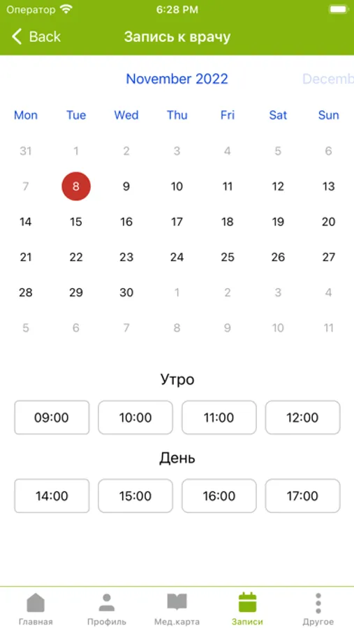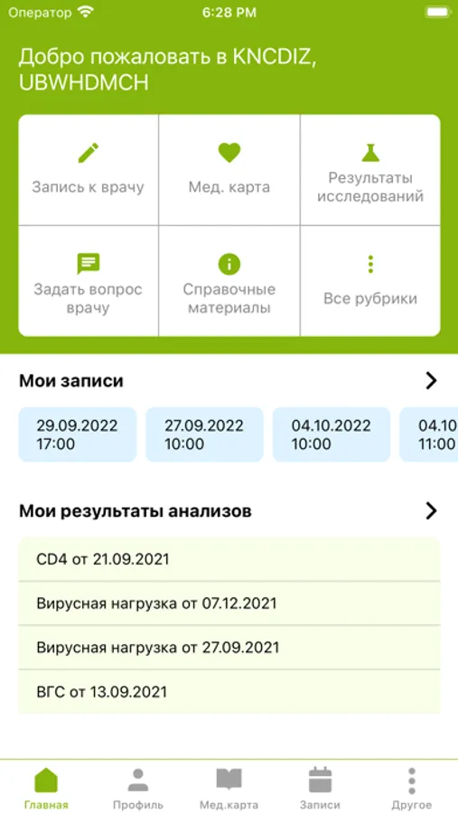 На главной странице приложения отображается поле: «Запись к врачу» и «Задать вопрос врачу».
