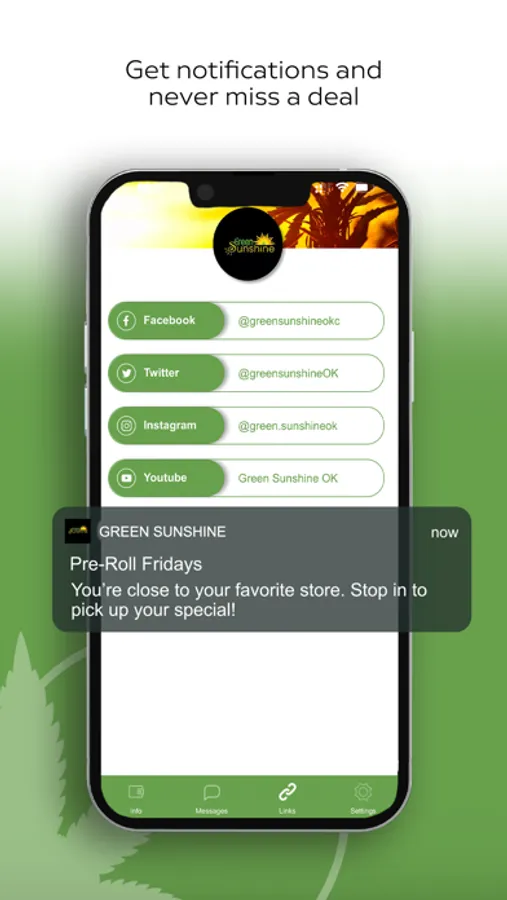 Get more of your favorite dispensary with the official Green Sunshine app! Get exclusive offers, deal alerts, browse our social media and much more! You will have access to our VIP messages with special deals right at your fingertips. Staying connected to your favorite dispensary has never been easier.