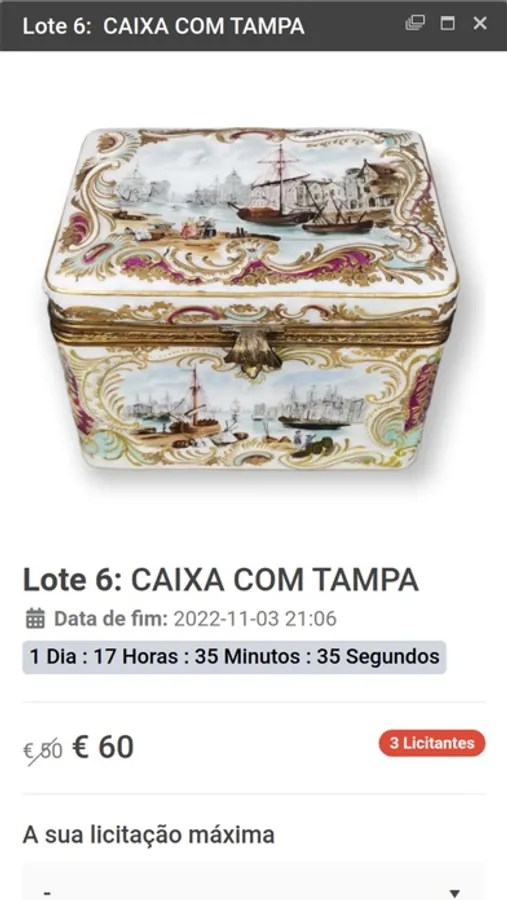 A BidAntiques - Leilões online traz-lhe o melhor nos leilões de belas artes, antiguidades e coleccionáveis. Trabalhamos para lhe oferecer leilões on-line em diversas categorias, incluindo pintura, arte decorativa, relógios, jóias, arte asiática e muito mais.