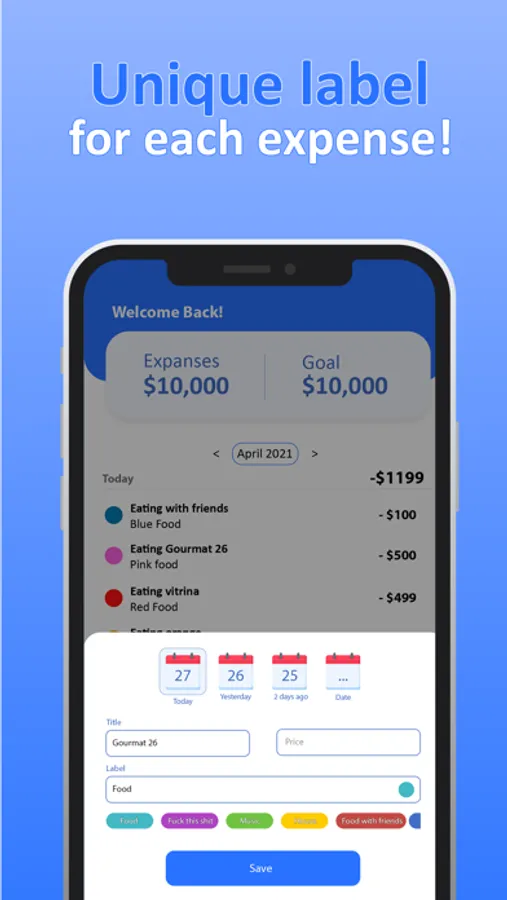 Saving money is not easy, but with financial and expenses organizer - every bill, every meal or every new purchase - will help you maintain focus on your wallet, by setting a unique label for each expense!