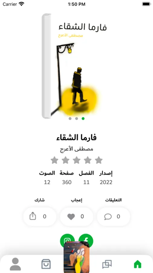 نضمن لك بكل ثقة تجربة قراءة غير مسبوقة لا تجدها لا بالكتب الكلاسيكية ولا بصفحات الفضاء الالكتروني. مع كل حرف وكلمة وفكرة وقصة ومشهد قصير أم طويل ومع صوت شجي يروي بحب واحساس أروع الحكايا. يخرج لك مبدعينا بتسلية مفيدة في هذا التطبيق الفريد لتضاعف المتعة والاستمتاع بالمحتوى والتصميم والتقنية في نفس الوقت. تفاعل مع كتاب الواقع "فارما الشقاء" داخل هذا التطبيق وكذلك على منصات التواصل الاجتماعي. عبّر عن رأيك. تكلم مع أصدقائك ومع جمهور الرواية وحتى مع الشخصيات. اعرف كل شيء وشارك في كل شيء. نتمنى لكم رحلة ممتعة.
