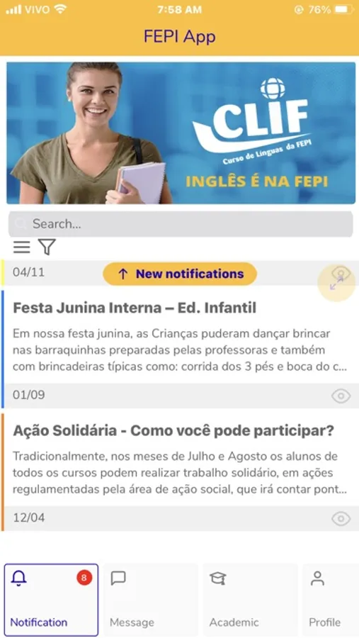 O aplicativo da FEPI veio para facilitar a vida de alunos e professores. Por ele é possível acessar o controle acadêmico e acompanhar, notas, faltas e consultar o horário das aulas, acessar informações financeiras, agilizando o acesso às mensalidades, taxas de serviços e a solicitação de requerimentos. Além de tudo isso, o aplicativo vem para agilizar a comunicação da instituição com você.