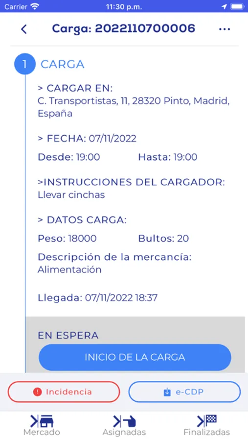 Esta es la App para transportistas.