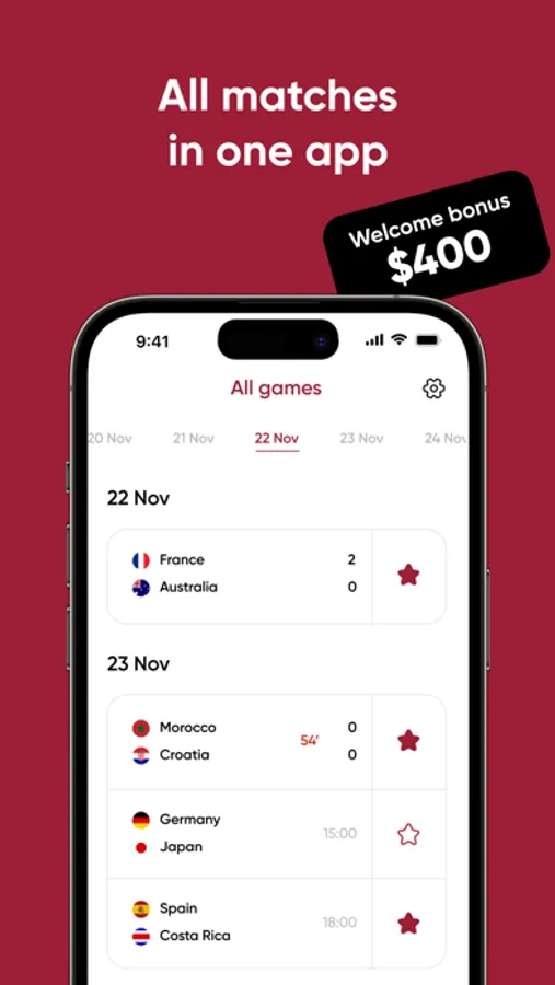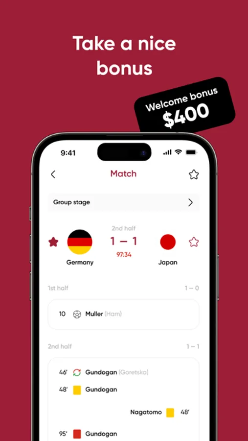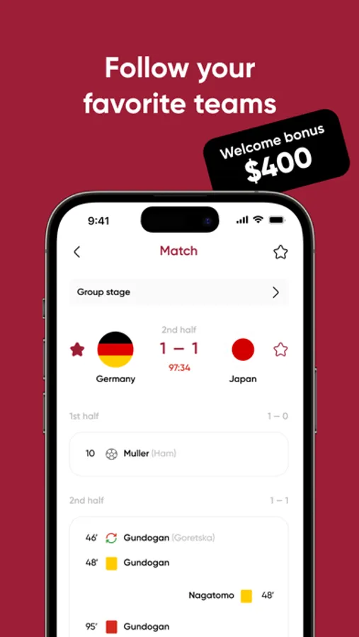 - Add your favorite team to your favorites and don't miss a single event associated with it.
