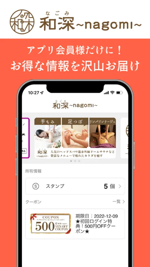 アプリを通して和深の新着情報やお得な情報を受け取ることができます。また、いつでもお手元のスマートフォンから、メニューやご希望のお時間帯のチェック・ご予約などが可能です。アプリをインストールしていただくことによりRelux & Beauty和深~nagomi~を、より便利に身近にご利用していただけます。