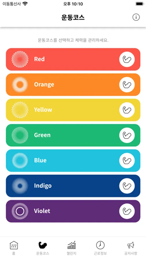 7가지의 체계적인 운동프로그램인 레인보우 운동코스를 통해 자신의 종목에 최적화된 운동코스를 선택을 하실 수 있습니다.