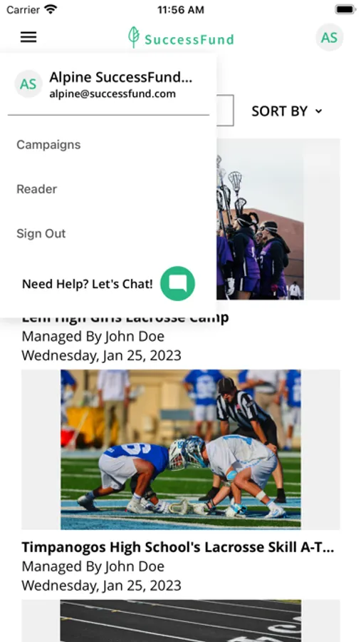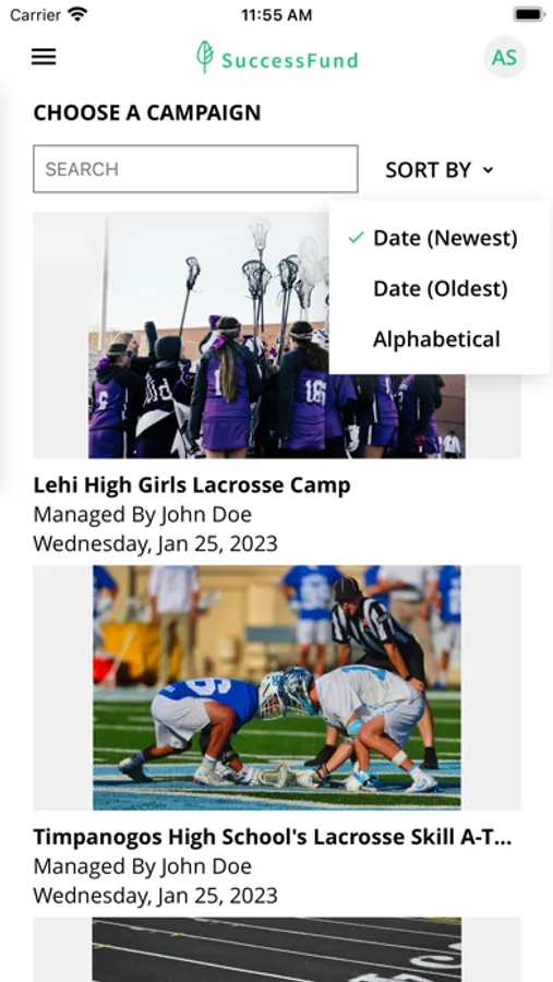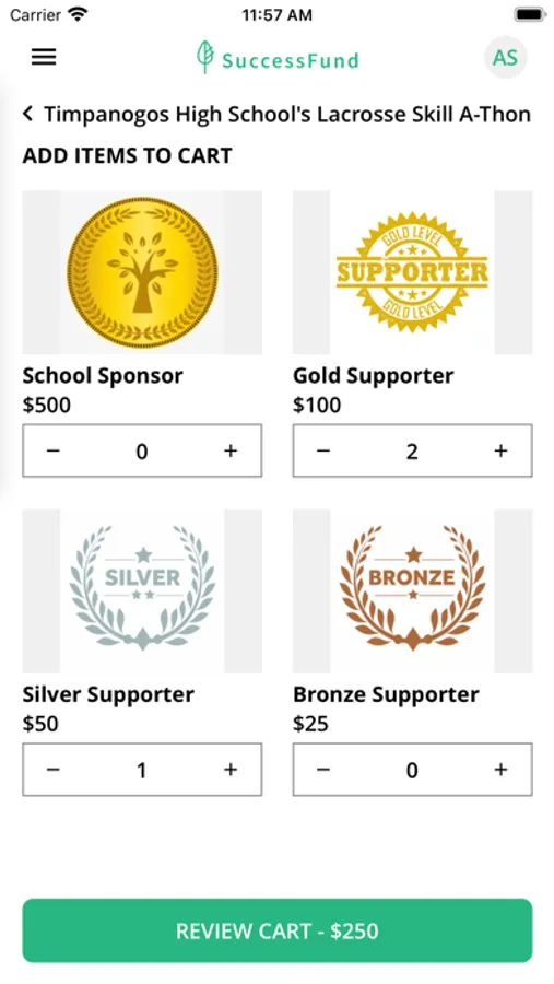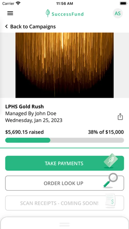 Sign in to the SuccessFund app to access your free online campaigns. From there, start accepting payments and managing order fulfillment for pickup, delivery, or admission.