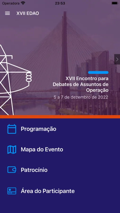 Aplicativo oficial do XVII Encontro para Debates de Assunto de Operações, com informações sobre o evento, programação, mapa do evento, avaliação do evento, etc.