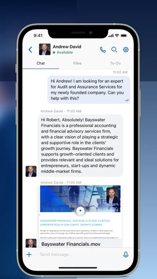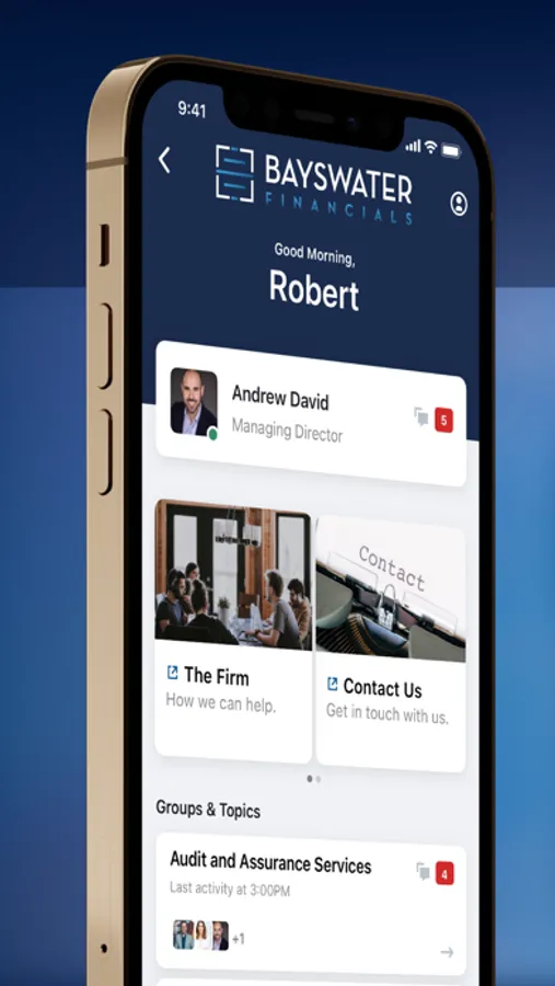 The Bayswater Financial App provides you with direct access to our team via secure messaging and video conferencing. Interactive capabilities such as document sharing, digital signature, task management, screensharing, and more enable a seamless financial planning experience from the convenience of your mobile device.