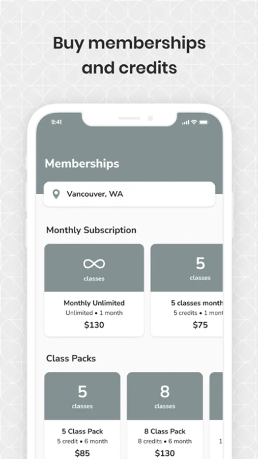 □ Purchase class packages, memberships, and gift cards