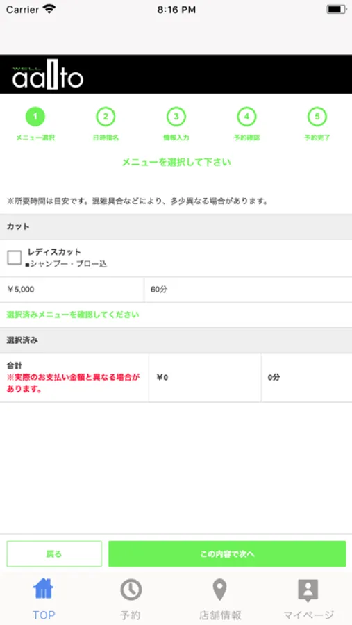 予約状況の確認やキャンセルがマイページ上から行えます。スタッフの登録が出来るので前もって担当者を登録しておけばマイページからスムーズな指名予約が可能です。
