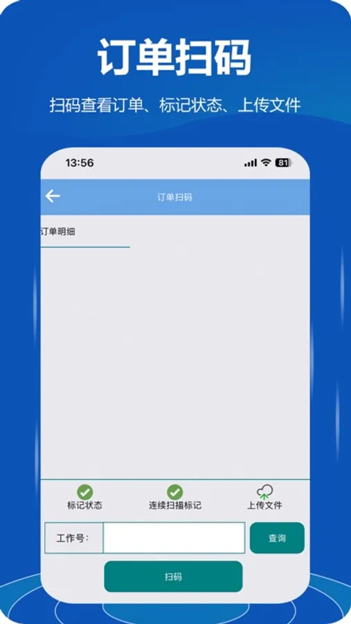 · 通过扫描订单号的二维码或条形码,快捷预览订单信息;