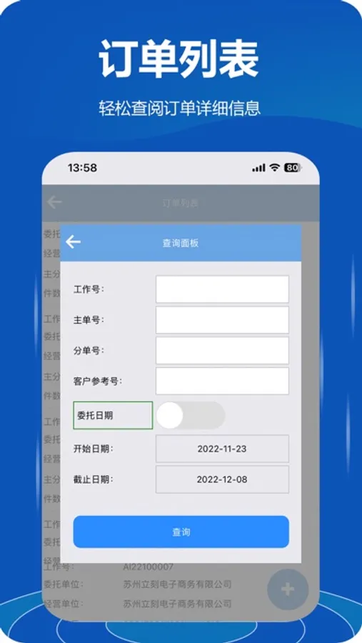 · 直接检索本账号权限内可以查看的订单内容;