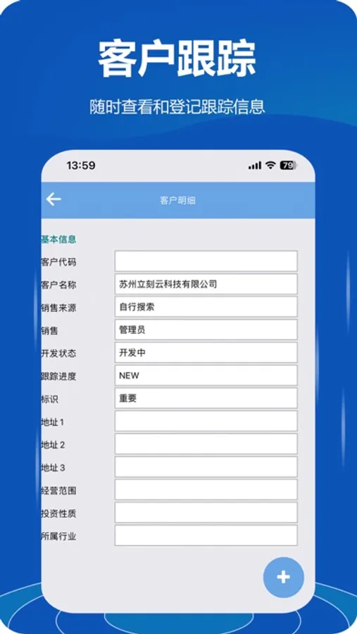 · 查询已经维护的待跟踪客户信息,并支持随时填写对此客户的跟进情况记录;