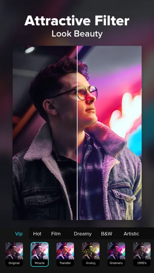 Add filters effects to get an cinematic look with popular categories like VIP, Hot, Flimy, Dreamy, B &W, Artistic or any types of output required.