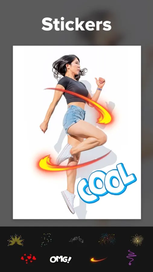 We can add photos from the users gallery, and stickers are provided in the application. Both photos and stickers which can be resized on videos and photos.