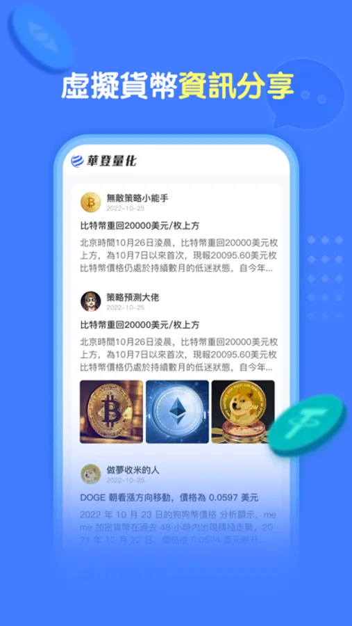Huadeng Quantification is a bridge for investors, researchers and enthusiasts in the blockchain industry to quickly understand and enter the blockchain world. Our distinctive features are easy to use and powerful, which can provide everything needed for automated transactions. We will always maintain this way. It provides the whole industry with accurate, fast and comprehensive industry information, in-depth analysis of articles, hot spot tracking and data monitoring, and also provides BTC, ETH, EOS, TRX, DOGE, SHIB, LTC, DOT, FIL, EOS, OP, XRP, ADA, an accurate and high-yield free one click replication quantitative trading platform. We provide various strategies, adjust to the trend, shock the market, arbitrage and other strategies Meet the needs of industry users for innovative management of digital asset appreciation, so that everyone can conduct automatic encryption transactions, and provide opportunities for traders with all levels of experience to make profits in the growing encryption market.