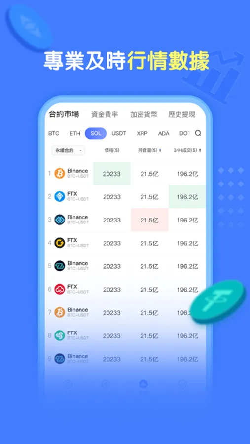 2. Real time information market: we collect real-time transaction data of Huo coin, OKEx, Coin security, Zhongyin ZB, Gate and other platforms, and support real-time market of thousands of digital currencies, including Bitcoin BTC, Ethereum ETH, Bitcoin Cash BCH, Lite coin LTC, Wave Field TRX, KAN and so on;